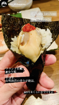 ゆり姫®&佐賀のり 竹崎産ゆり姫®と竹崎産佐賀のり 赤ゆず胡椒を添えて 写真は居酒屋さくらの(東京千歳船橋)の常連様に送ってもらいました。 記事の詳細を記述します。 2021/03/01 19:40日々のこと Tweet
